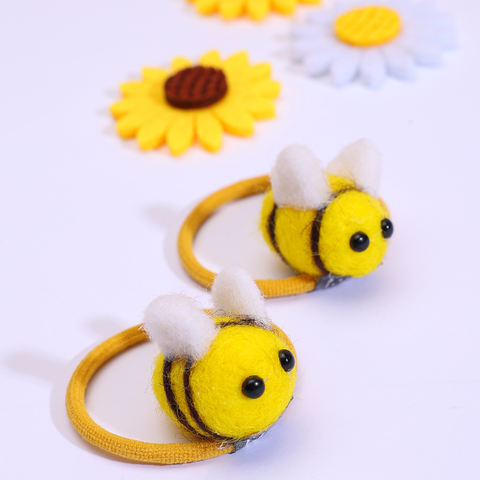 CN 2Pcs/Set Children Cartoon Cute Mini Yellow Felt Bee Elastic Hair Tie Rope for Toddler Kids