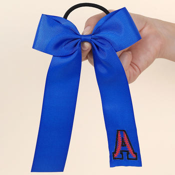 CN Factory Customized Logo Grosgrain Ribbon Cheer Bows for Girls Cheerleading Accessories with Embroidered Letters Cheer Bows