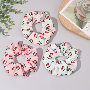 CN 3Pcs Fashion Korean Print Red Cherry Fabric Scrunchies for Women Lady Hair Ponytail Holder Scrunchies