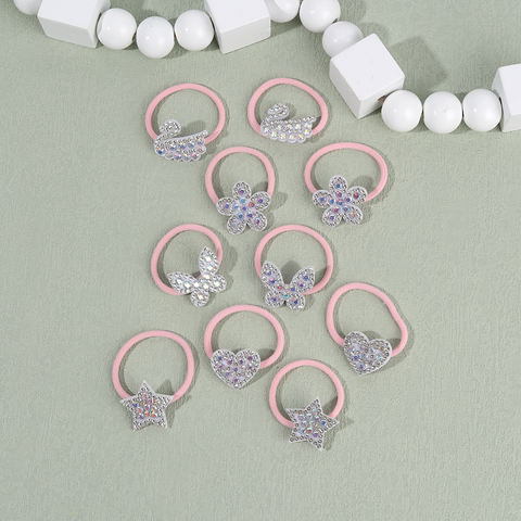 CN 10PCS Fashion Pearl Flower Butterfly Elastic Rubber Hair Ties Sparkly Rhinestone Star Baby Ponytails Accessories